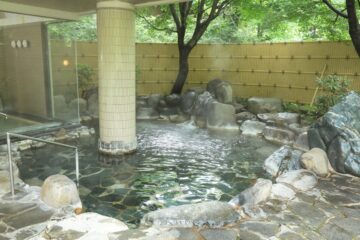 お風呂は大浴場・庭園露天風呂のほか、全6室ある最上階の貸切展望露天風呂も格安で利用可能。プライベートな空間で湯浴みできます。客室は和室・洋室など全221室。なかでも露天風呂付客室が人気です。